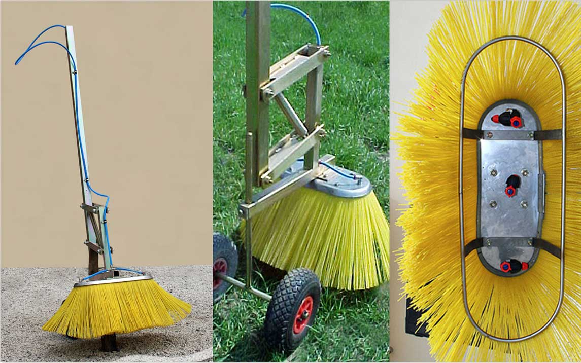Форсунки распыляют продукт обработки в указанную зону, благодаря нейлоновой щетине, размещенной по периметру щетки, которая имеет форму плафона.